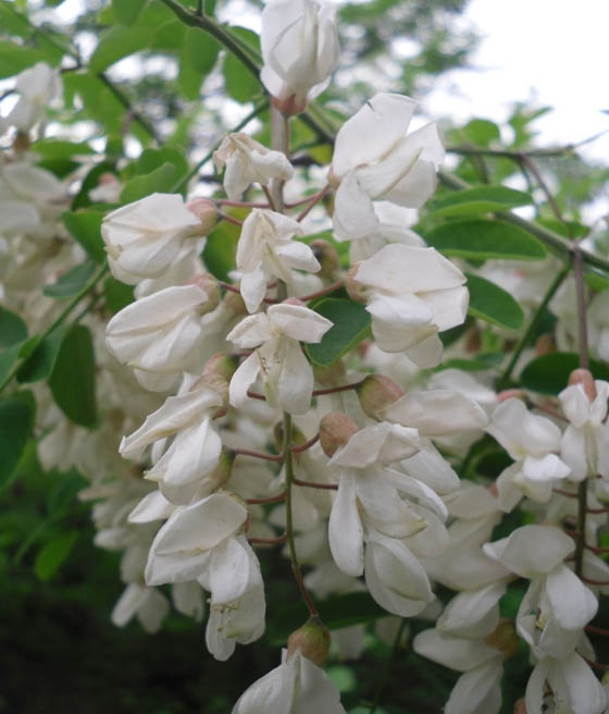 Kwitnienie pojawia się w maju lub na początku czerwca. Kwiaty są białe, motylkowate, zebrane w luźne grona. Zwykle kwitnienie jest słabsze niż u klasycznych robinii i nie zawsze regularne, dlatego odmiana ta uprawiana jest głównie ze względu na oryginalny pokrój, a nie kwiaty.