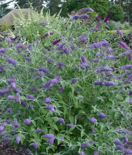 Budleja Dawida ‘Empire Blue’ (Buddleja davidii) to silnie rosnąca odmiana tworząca efektowne kwiatostany. Jest nazywana „motylim krzewem”, gdyż w okresie kwitnienia przyciąga chmary motyli. Kwiaty budlei są odwiedzane także przez pszczoły.