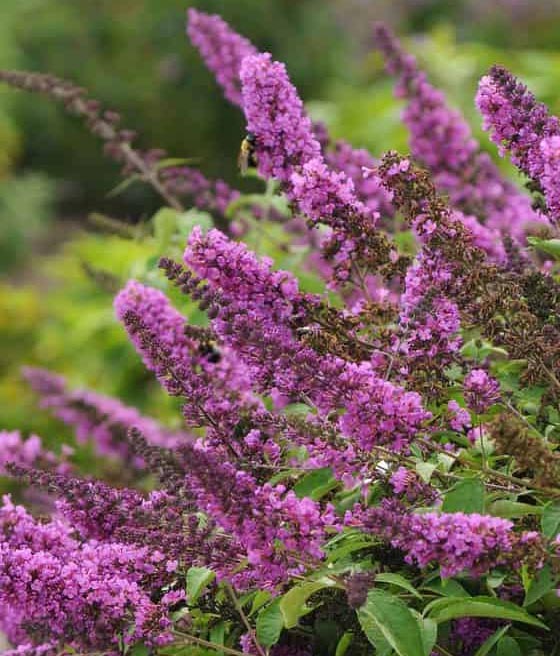 Kwitnienie rozpoczyna się latem i trwa długo, najczęściej od lipca do września. Na końcach pędów pojawiają się stożkowate kwiatostany złożone z drobnych kwiatów w głębokim, ciemnoróżowym kolorze. Kwiaty wydzielają intensywny, przyjemny zapach, który jest wyraźnie wyczuwalny i bardzo skutecznie przyciąga motyle, pszczoły oraz inne owady zapylające.