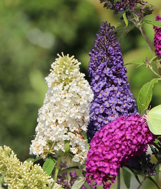 Kwitnienie rozpoczyna się latem i trwa długo, najczęściej od lipca do września. Na roślinie jednocześnie pojawiają się kwiatostany w różnych kolorach, najczęściej fioletowe, różowe oraz białe lub jasnoliliowe. Kwiaty są drobne, zebrane w długie, stożkowate wiechy i intensywnie pachną. Zapach jest słodki i bardzo atrakcyjny dla motyli, pszczół oraz innych zapylaczy.