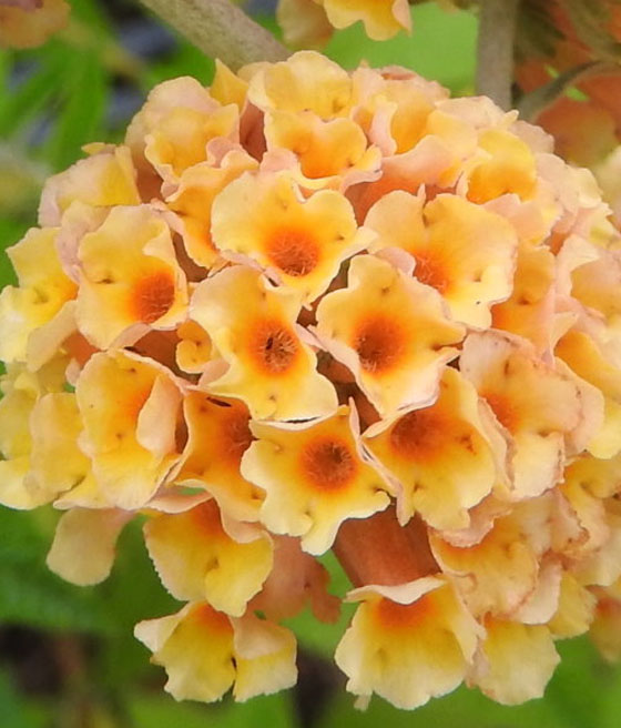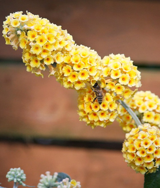 Kwitnienie rozpoczyna się latem i trwa długo, zazwyczaj od lipca do września. Na końcach pędów pojawiają się kuliste i półkuliste kwiatostany w odcieniach żółci i jasnego pomarańczu. Kwiaty wydzielają przyjemny, słodki zapach, wyraźnie wyczuwalny w ciepłe dni, który skutecznie przyciąga motyle, pszczoły i inne zapylacze.