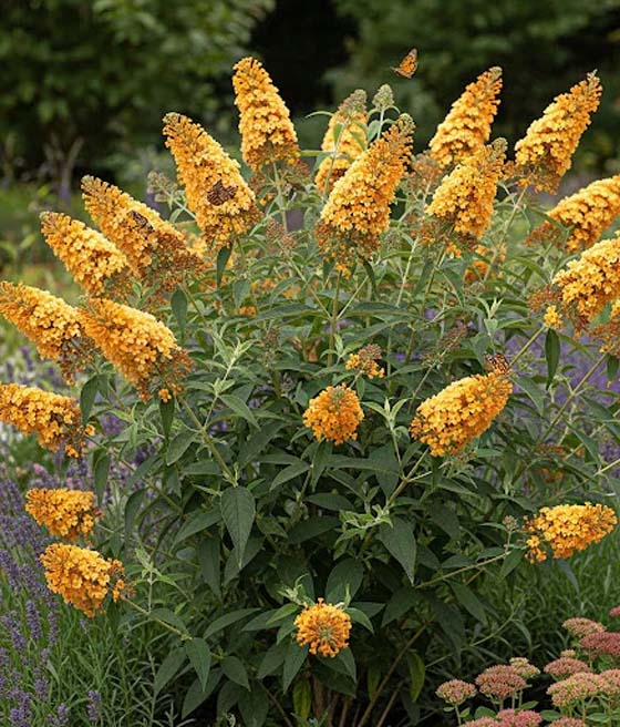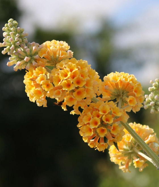 Budleja Weyera ‘Sungold’ to atrakcyjna odmiana o ciepłej, słonecznej kolorystyce kwiatów, która wnosi do ogrodu lekkość i letni charakter. Jej jasne, żółto-pomarańczowe kwiaty pięknie wyróżniają się na tle zielonych liści i stanowią silny magnes dla motyli oraz innych owadów zapylających.