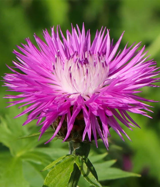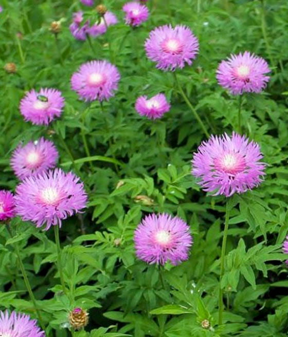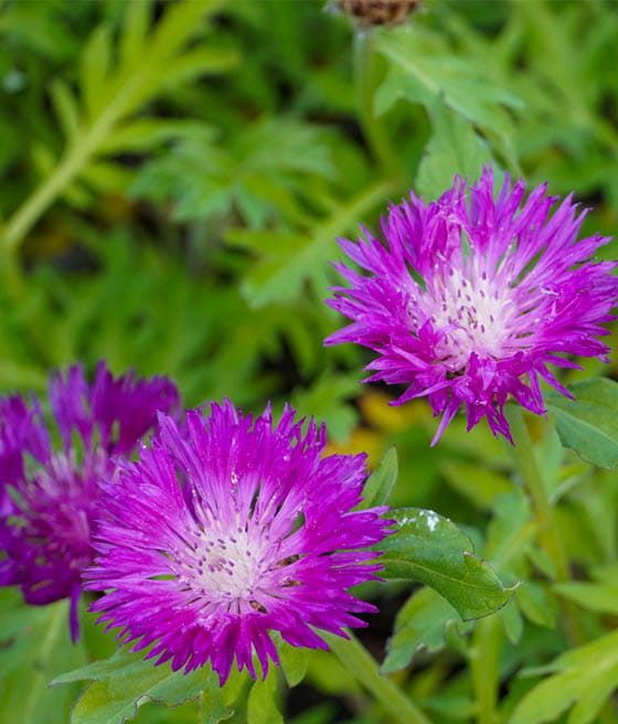 Chaber białawy idealnie komponuje się w ogrodach skalnych, na rabatach bylinowych oraz w naturalnych łąkach kwietnych.