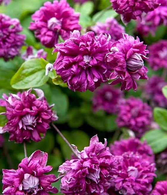 Powojnik 'Purpurea Plena Elegans' kwitnie od lipca do września, oferując obfite kwiaty przez całe lato. Jego długi okres kwitnienia sprawia, że jest to roślina, która przez długi czas będzie dekorować ogród i przyciągać wzrok swoimi intensywnymi kwiatami.