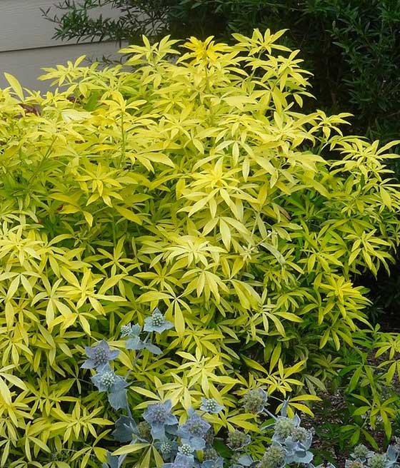 Choisya ternata ‘Goldfinger’ to zimozielony krzew, który natychmiast przyciąga uwagę intensywnie złocistym ulistnieniem i eleganckim pokrojem. Przez cały rok rozjaśnia rabaty, a wiosną dodatkowo zachwyca białymi, pachnącymi kwiatami o cytrusowym aromacie. To doskonały wybór do ogrodów nowoczesnych i klasycznych – efektowny, a jednocześnie łatwy w uprawie i niewymagający częstego cięcia.