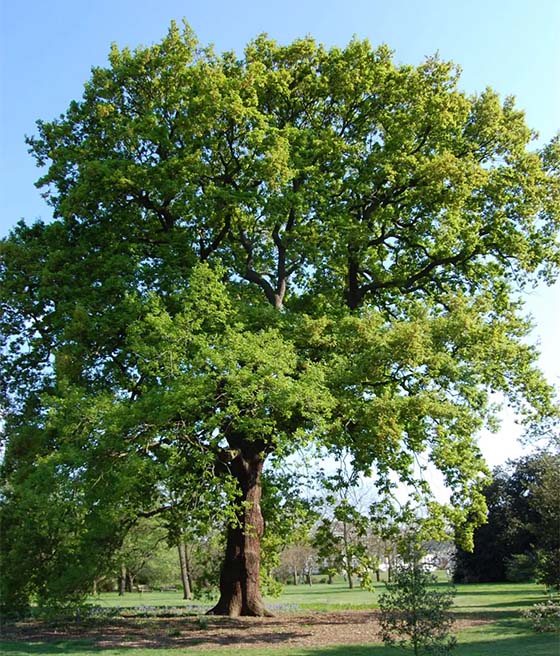 Dąb bezszypułkowy (Quercus petraea) to potężne drzewo liściaste o szerokiej, gęstej koronie, cenione za długowieczność i dekoracyjne liście, które jesienią przebarwiają się na żółto-brązowo. Doskonale sprawdza się w dużych ogrodach, parkach i nasadzeniach krajobrazowych.