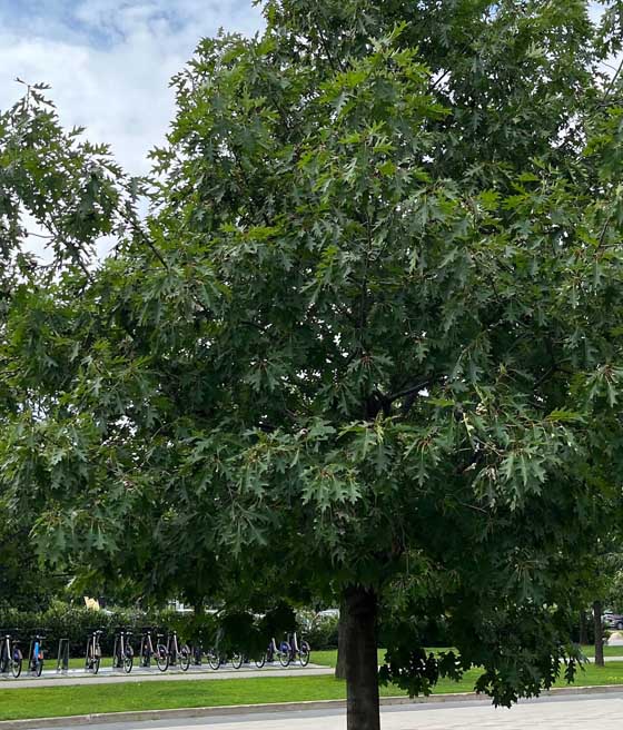 Dąb Czerwony (Quercus rubra) to szybkorosnące drzewo liściaste o szerokiej koronie i dekoracyjnych liściach, które jesienią przebarwiają się na czerwono i purpurowo. Sprawdza się w dużych ogrodach, parkach i nasadzeniach krajobrazowych.