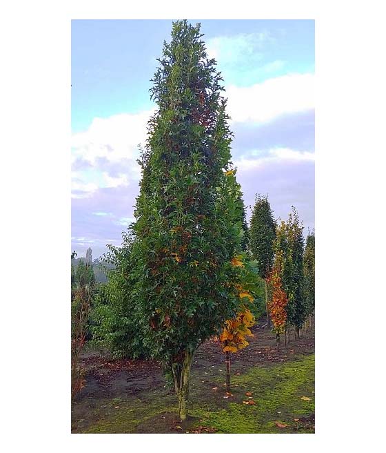 Dąb kolumnowy Green Pillar to nowoczesna interpretacja klasycznego dębu – zachowuje siłę i długowieczność gatunku, ale w znacznie bardziej uporządkowanej, pionowej formie. Dzięki wąskiemu pokrojowi pozwala wprowadzić dąb do przestrzeni, w których tradycyjne odmiany byłyby zbyt rozłożyste. To drzewo, które daje wrażenie solidności bez przytłaczania otoczenia.