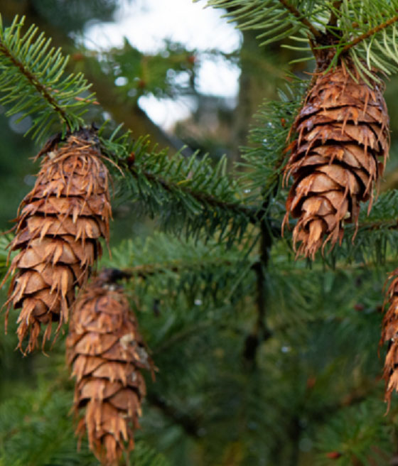 Daglezja Zielona (Pseudotsuga menziesii) to wysokie drzewo iglaste o stożkowatym pokroju, gęstych jasnozielonych igłach i dekoracyjnych szyszkach, idealne do dużych ogrodów i parków.