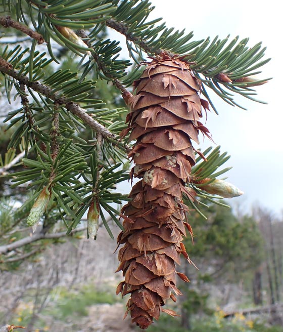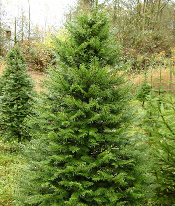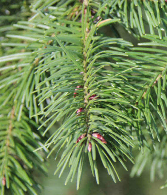 Osiąga 30–50 metrów wysokości, tworzy gęstą stożkowatą koronę. Igły jasnozielone, kora brunatna, spękana, szyszki podłużne.
