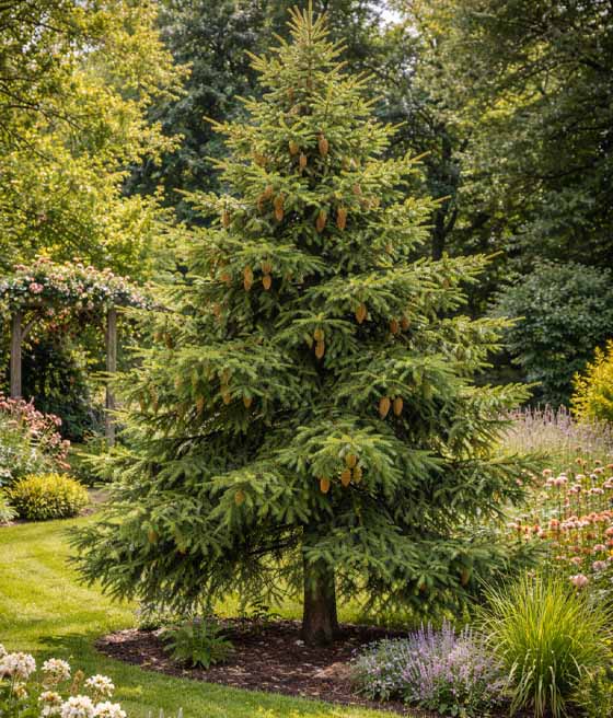 Sprawdza się jako soliter i w nasadzeniach krajobrazowych, dekorując przestrzeń igłami i szyszkami przez cały rok.