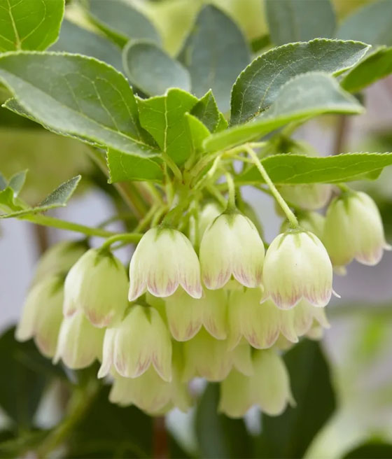 Enkiant dzwonkowaty ‘Prettycoat’ to elegancki, rzadziej spotykany krzew ozdobny, który zachwyca przez cały sezon – najpierw subtelnym, wiosennym kwitnieniem, a jesienią spektakularnym przebarwieniem liści. Roślina ma naturalny, lekki pokrój i doskonale wpisuje się w ogrody inspirowane naturą.
