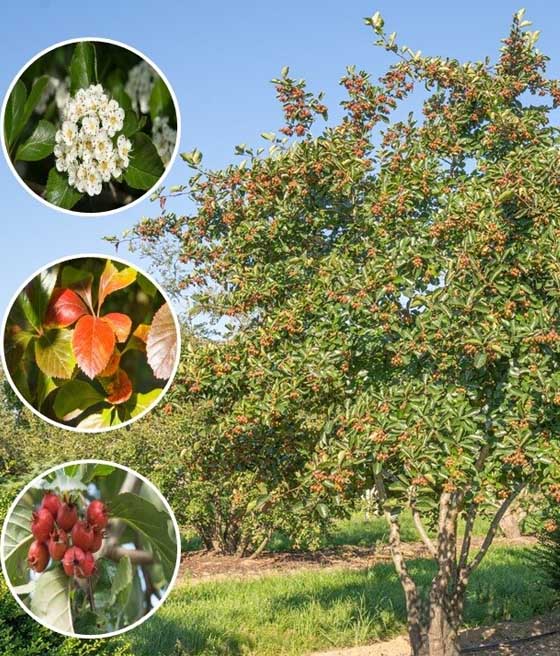 Kwitnie w maju, tworząc drobne, białe kwiaty zebrane w baldachogrona, chętnie odwiedzane przez owady zapylające. Jesienią drzewo obsypuje się licznymi, kulistymi, czerwonymi owocami, które dojrzewają we wrześniu i październiku i często utrzymują się na gałęziach aż do zimy. Owoce stanowią cenne źródło pokarmu dla ptaków i dodatkowo podnoszą walory dekoracyjne rośliny.