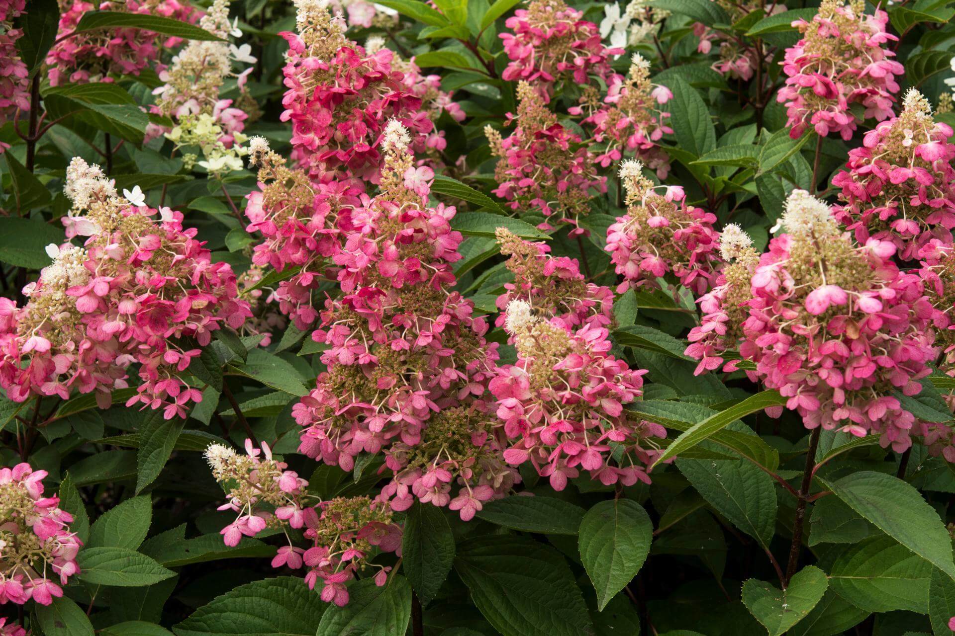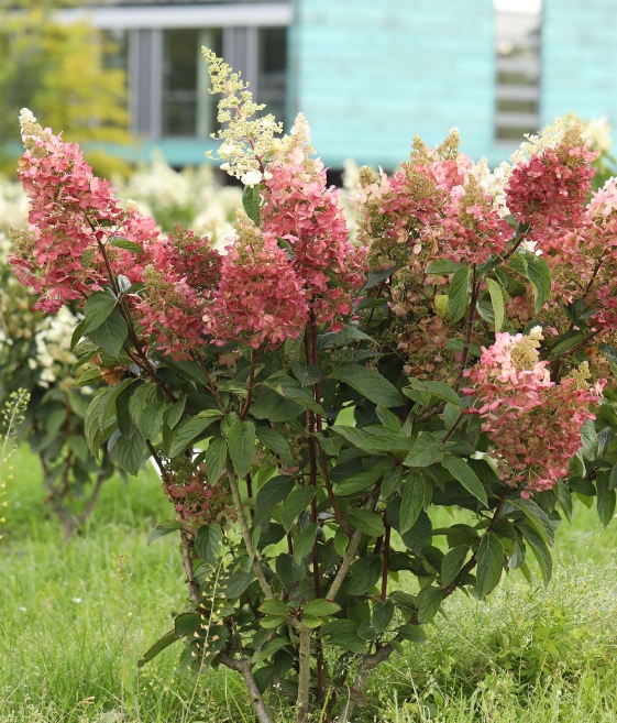 Kwitnienie rozpoczyna się w lipcu i trwa do września, a często również do października. Kwiatostany są duże, stożkowate, początkowo kremowobiałe, z czasem delikatnie różowieją. Zmiana barwy jest łagodna i bardzo efektowna.
