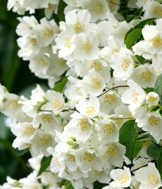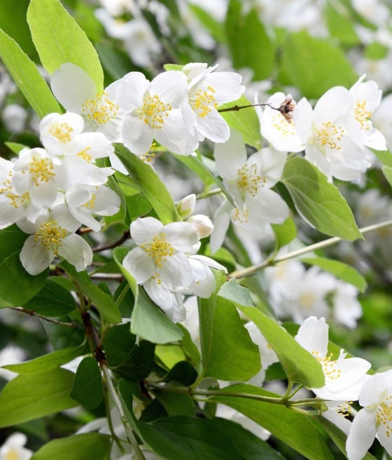Jaśminowiec wonny kwitnie późno – zakwita pod koniec czerwca. Kontynuuje kwitnienie przez lipiec. Kwiaty przyciągają zapylacze.