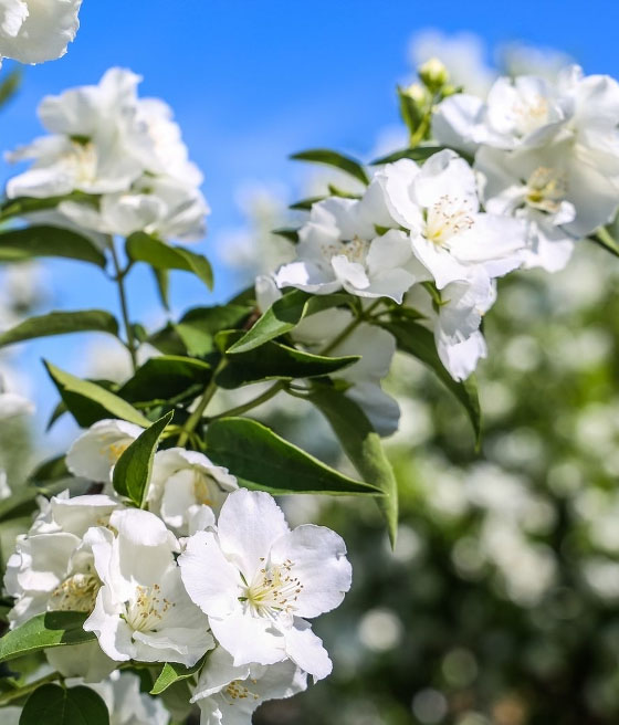 Jaśminowiec ‘Limestone’ kwitnie wcześnie, najczęściej w maju. Kwiaty przyciągają zapylacze.