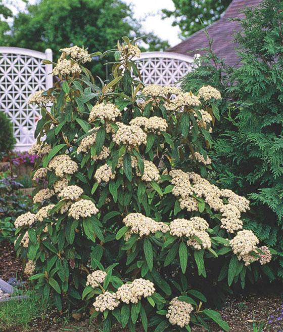 Kalina sztywnolistna to zimozielony krzew ozdobny o wyprostowanym, gęstym pokroju, dorastający zwykle do 3–4 metrów wysokości. W maju i czerwcu obsypuje się licznymi, kremowobiałymi kwiatami zebranymi w baldachy, które wyróżniają się subtelnym zapachem. Jesienią dodatkową ozdobą są dekoracyjne owoce oraz ciemnozielone liście, które utrzymują barwę przez cały rok, nadając ogrodowi elegancji nawet w chłodniejszych miesiącach.