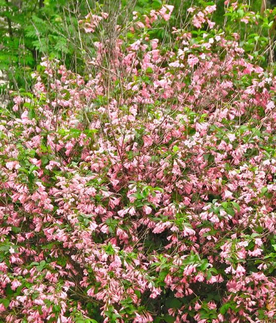 Krzewuszka cudowna ‘Marjorie’ kwitnie od maja do czerwca. Kwiaty stanowią pożytek pszczeli.