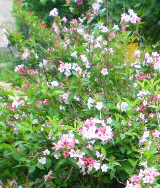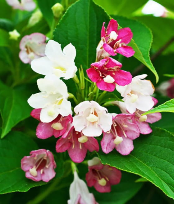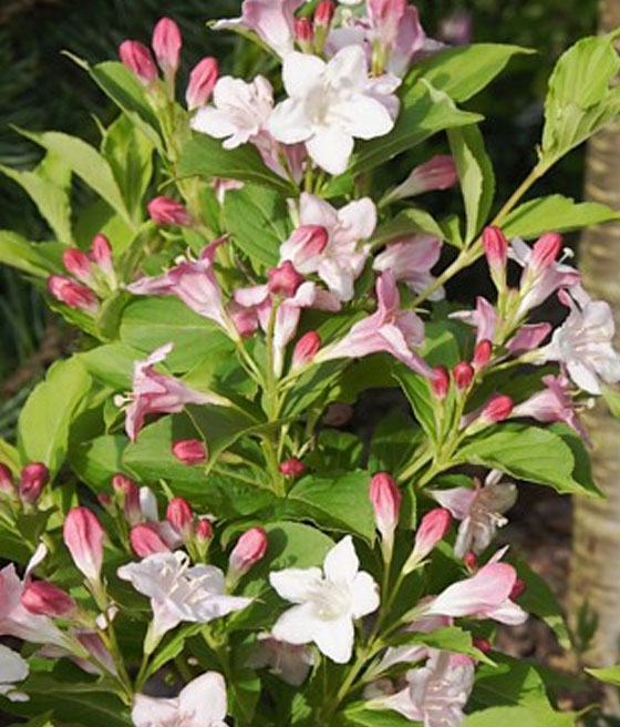 Krzewuszka cudowna ‘Marjorie’ (Weigela florida) wyróżnia się zmiennością barw kwiatów. Na jednym krzewie występują kwiaty w różnych kolorach i odcieniach.