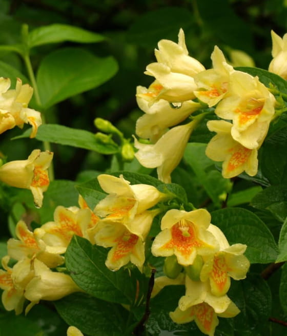 Krzewuszka Middendorfa (Weigela middendorffiana) to kuzyn znanej krzewuszki cudownej. Ma podobny wygląd, ale wyróżnia się nietypową barwą kwiatów. Posiada również ozdobne pędy.