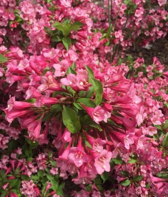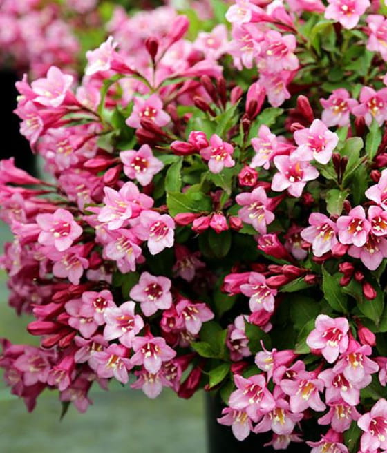 Krzewuszka cudowna ‘Minuet’ najczęściej zakwita na przełomie maja i czerwca. Kwiaty przyciągają motyle i zapylacze.
