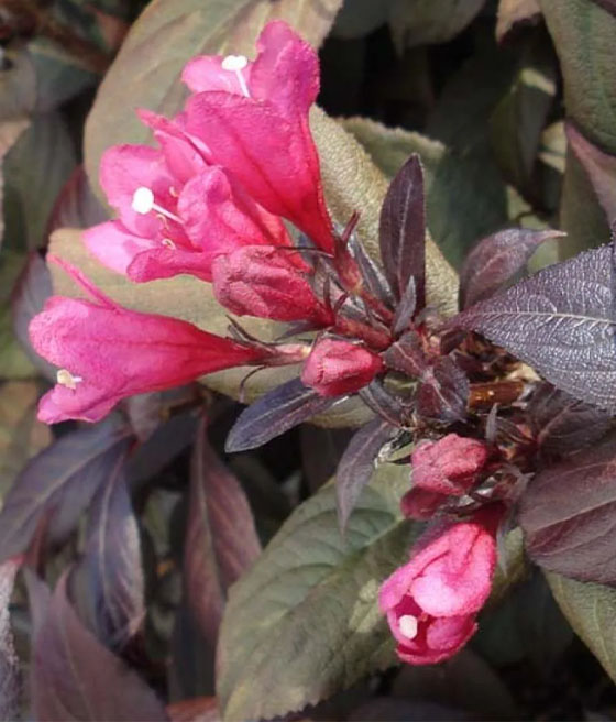Krzewuszka cudowna ‘Victoria’ kwitnie późno – w czerwcu. Kwiaty czasem utrzymują się jeszcze w lipcu.