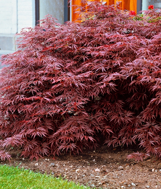 Klon palmowy Acer palmatum ‘Garnet’ to efektowna odmiana o intensywnie wybarwionych, ciemnoczerwonych liściach i eleganckim, przewieszającym się pokroju. Należy do grupy klonów typu dissectum, dzięki czemu wyróżnia się delikatną, koronkową formą liści. Doskonale sprawdza się w ogrodach przydomowych, ogrodach japońskich oraz w kompozycjach, gdzie liczy się kolor i forma przez cały sezon.