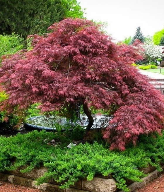 Dzięki intensywnej barwie liści i przewieszającemu się pokrojowi świetnie sprawdza się jako soliter. Pasuje do ogrodów japońskich, naturalistycznych oraz nowoczesnych, a także do nasadzeń przy oczkach wodnych i tarasach. Może być również uprawiany w dużych donicach jako wyrazisty akcent dekoracyjny.