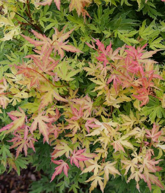 Wzrost jest umiarkowany, a roślina zazwyczaj osiąga 2–4 m wysokości, tworząc zwarty, gęsty pokrój. Młode liście rozwijają się w odcieniach różu i czerwieni, następnie pojawiają się barwy zieleni z jasnymi i ciepłymi akcentami, by pod koniec sezonu przejść w intensywne czerwienie, pomarańcze i żółcie. Zmienność kolorów jest jedną z największych zalet tej odmiany.