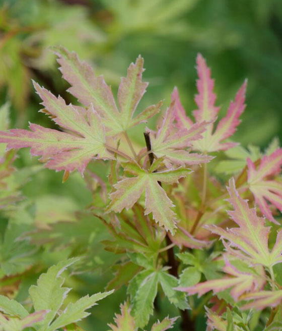 Klon palmowy Acer palmatum ‘Metamorphose’ Arjos 1 to nowoczesna, bardzo efektowna odmiana, która wyróżnia się wyjątkowo zmiennym wybarwieniem liści. Już od wiosny przyciąga uwagę intensywnymi kolorami, które płynnie przechodzą przez kolejne fazy barw w trakcie sezonu. Dzięki temu roślina wygląda inaczej niemal co kilka tygodni i stanowi mocny akcent dekoracyjny w ogrodzie.