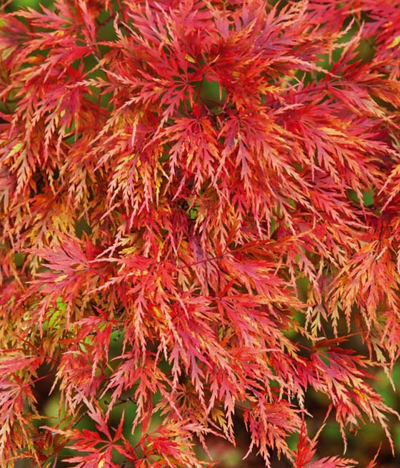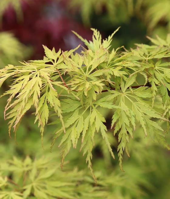 Klon palmowy Acer palmatum ‘Seiryu’ to wyjątkowa odmiana o delikatnie powcinanych liściach, która w przeciwieństwie do większości klonów typu dissectum ma wyprostowany, lekki pokrój. Dzięki temu łączy koronkową strukturę liści z bardziej pionową formą, co czyni go bardzo uniwersalnym w aranżacjach ogrodowych.