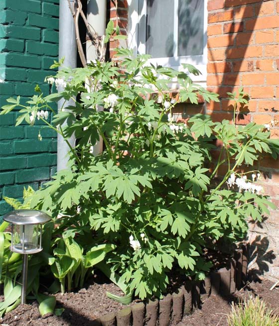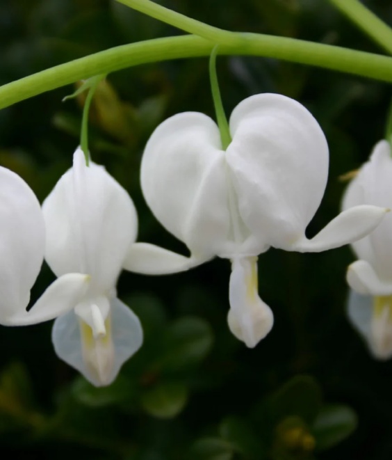 Kwiaty mają elegancki biały kolor, sercowaty kształt i wydzielają delikatny, lekko słodki aromat. Kwitnienie przypada od kwietnia do czerwca, przyciągając owady zapylające i wprowadzając do ogrodu subtelny, romantyczny akcent. Kwiaty zwisają na długich szypułkach, tworząc malownicze, lekko falujące dekoracje.