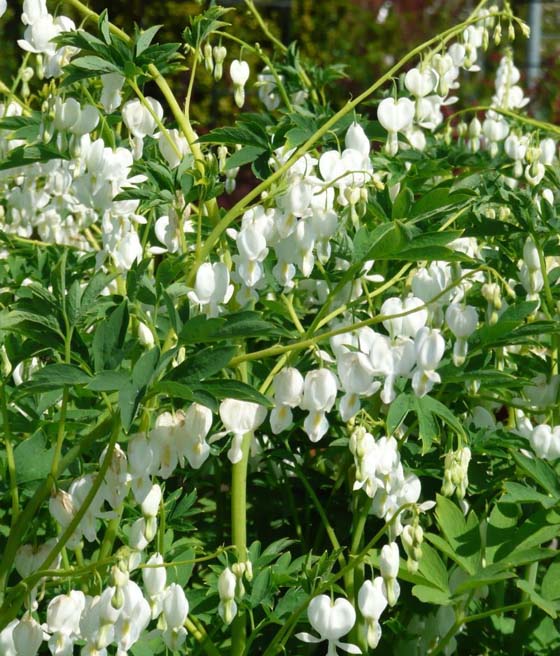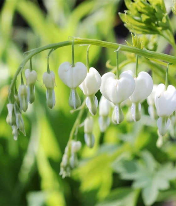 Serduszka okazałe ‘Alba’ (Dicentra spectabilis ‘Alba’) to wyjątkowa odmiana wyróżniająca się śnieżnobiałymi, sercowatymi kwiatami - w przeciwieństwie do najpopularniejszych odmian o barwie różowej.
