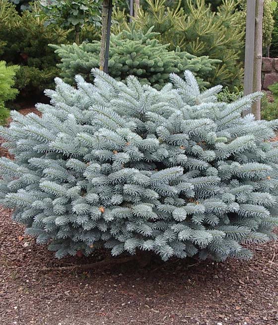 Świerk kłujący ‘Glauca Globosa’ (Picea pungens ‘Glauca Globosa’) to karłowa, wolno rosnąca odmiana o efektownych, srebrzystoniebieskich igłach i zwartej formie.