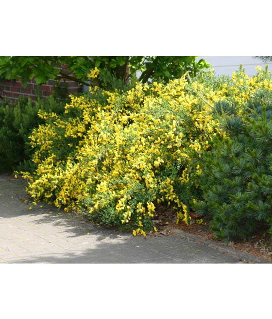 Żarnowiec 'Golden Sunlight' (Genista) to atrakcyjny krzew ozdobny, który zachwyca intensywnym, żółtym kwitnieniem i kompaktowym pokrojem. Jest to odmiana ceniona za swoją dekoracyjność, zwłaszcza w okresie wiosennym, kiedy obficie kwitnie i wprowadza do ogrodu jasny, słoneczny akcent.