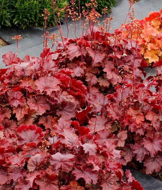 Żurawka (Heuchera) 'Forever Red' to wyjątkowa odmiana, która wyróżnia się intensywnymi, czerwono-bordowymi liśćmi, które zachowują swój żywy kolor przez cały sezon. Liście tej rośliny mają zaokrąglony kształt, są gładkie, a ich intensywna barwa zmienia się w zależności od pory roku, osiągając najpiękniejszy odcień czerwieni w chłodniejszych miesiącach.